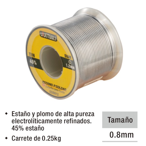 Este insumo es ideal para soldadura blanda en componentes electrónicos debido a su delgado diámetro, lo que permite una aplicación controlada de calor y material. Es compatible con cautines (soldadores manuales) de diversas potencias.